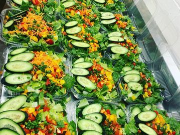 Chopped romaine with green onion, bell peppers, tomato, carrot and cucumber
