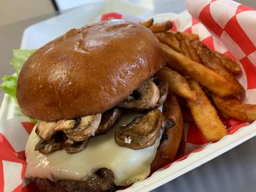 All burgers are made with a 1/2 pound all-beef patty on a toasted brioche bun served with french fries and lettuce, tomato, onions and pickles on the side. Cooked medium unless otherwise noted.