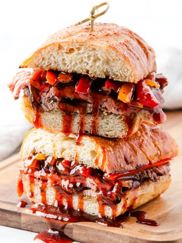 "All the Way" - Meat, BBQ sauce, sautéed bell peppers and onions